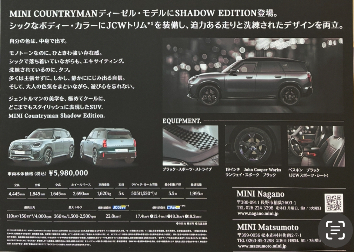 さて、2月14日(土)にMINI COUNTRYMAN SHADOW EDITION.