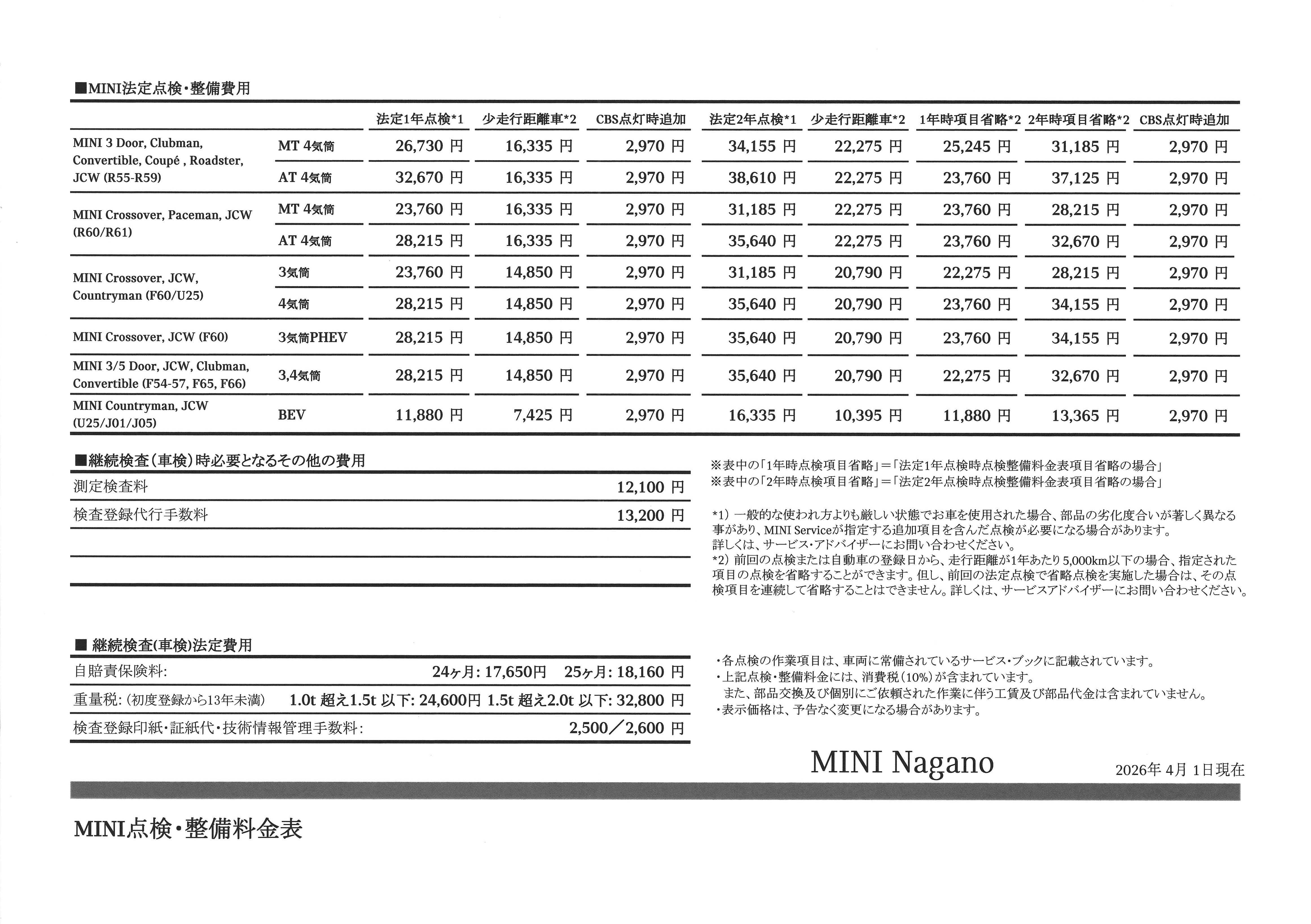 ※点検整備料金表の詳細については、サービス・アドバイザーにお問い合わせください。